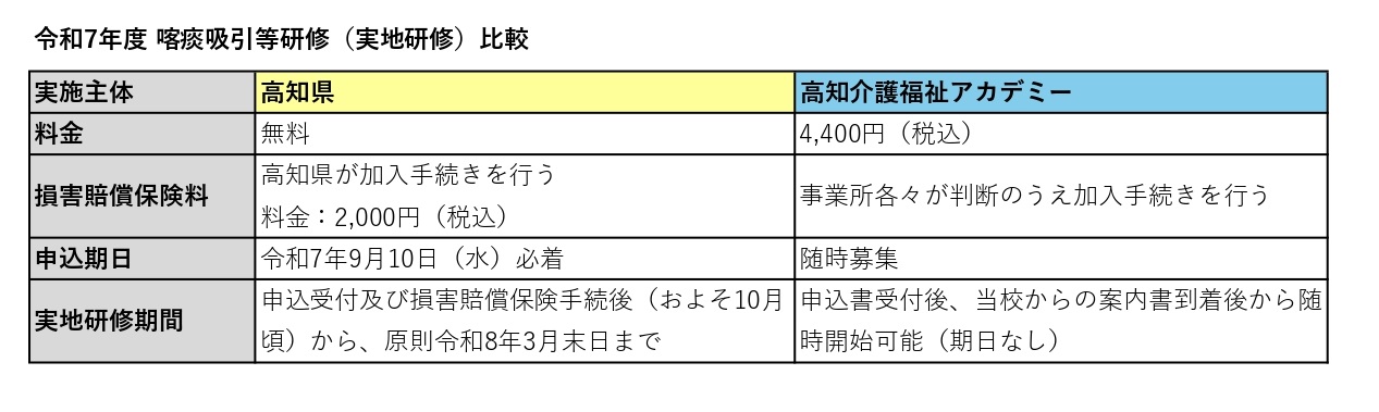 Q.高知県のホームページに出ている「令和7年度 高知県介護職員等喀痰吸引等研修」との違いは何ですか?